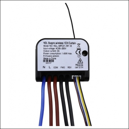 HDL-MPC01-RF.18 wireless 1CH curtain, has 4CH dry contact, can control the targets by switch. This module should work in conjunction with wireless gateway.
