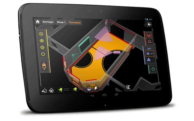 Here you will not find cumbersome button sets and menus with numerous sublevels. Due to a three-dimensional model, a user controls the system and the devices on an intuitive level. Management of any kinds of building automation systems with the THRONE interface is fast, simple and for the first time is genuinely intuitive.
